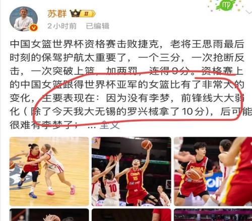 我们的内线厚度堪称世界级:韩旭攻防一体,李月汝经验丰富,新锐张子宇身高2米25,天赋肉眼可见。